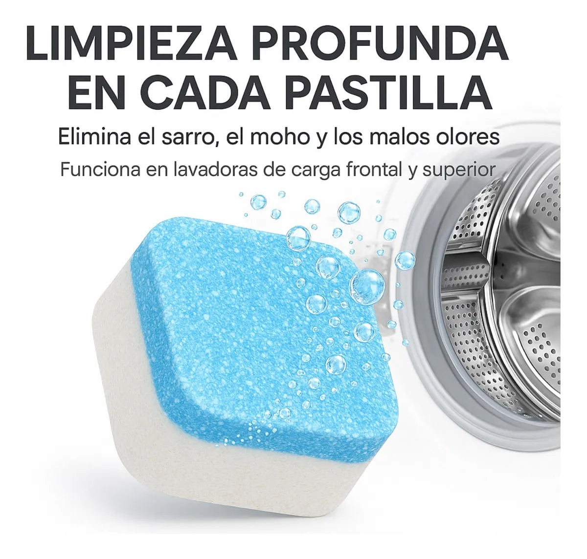 Con solo 3 pastillas al mes, mantienes tu lavadora como nueva y prolongas su vida útil. Miles de usuarios ya notan la diferencia desde el primer uso.
